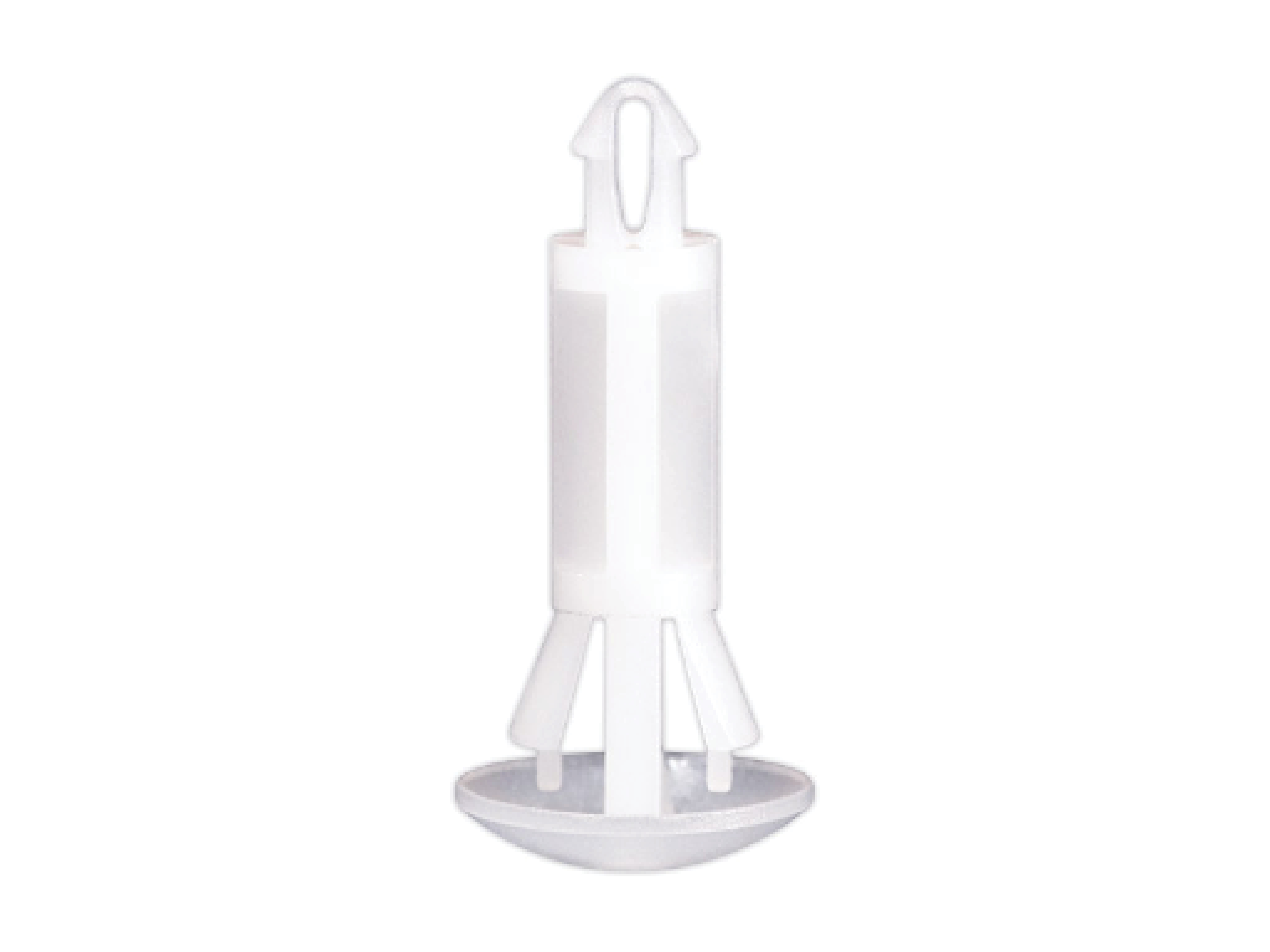 Reverse mount PCB spacer. Cupped design minimizes dust ingress and protrusion on chassis bottom. Teardrop snap fit for panel hole of 2 mm. Snap in fixation for chassis hole diameter of 4 mm. Standoff height 12 mm.