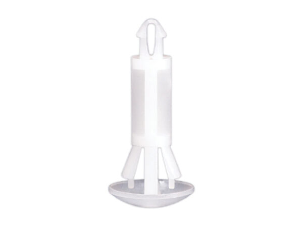 Reverse mount PCB spacer. Cupped design minimizes dust ingress and protrusion on chassis bottom. Teardrop snap fit for panel hole of 2 mm. Snap in fixation for chassis hole diameter of 4 mm. Standoff height 6.4 mm.
