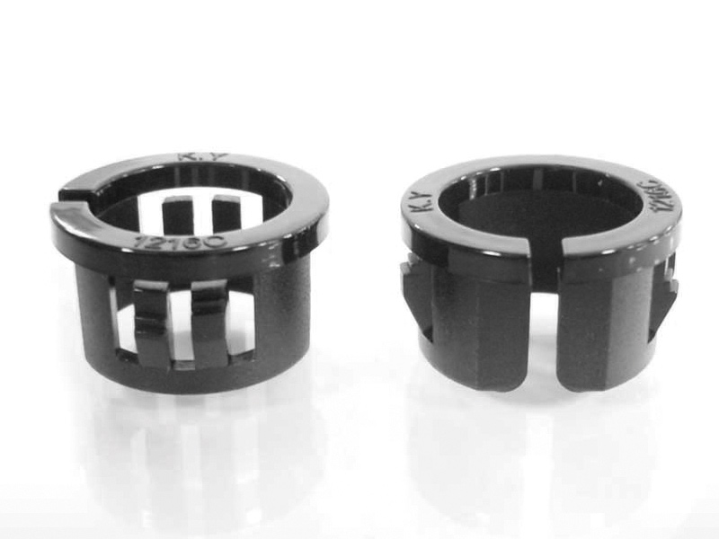 Nylon 66 Split or Open Bushing. Chassis Hole dia. Ø19.0mm. Panel Thickness 0.8-3.3mm. These Snap Bushings protect wires, cables, and tubing from sharp or uneven edges. UL recognized.