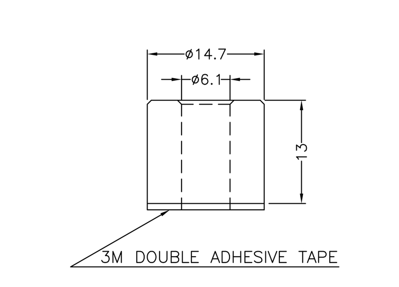 Non-Threaded Round Spacer Self-Adhesive Nylon 66. (ODxIDxH) 14.7×6.1×13.0mm. Color Natural/Black. These non-conductive plastic spacers prevent metal-to-metal contact and can also serve as a standoff. Other materials are available upon request.