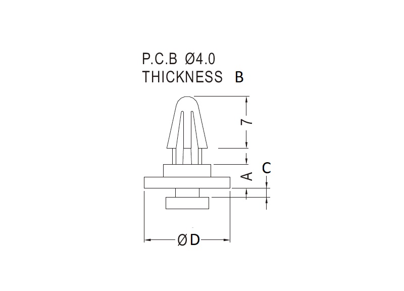 Snap lock for a 4 mm panel hole and a key slot locking at the chassis side. Spacer length is 3.2 mm.