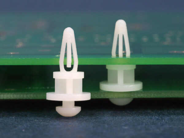 Snap lock spacer with bayonet nose for a 4 mm panel hole and a key slot locking at the chassis side. Spacer length is 6.4 mm.