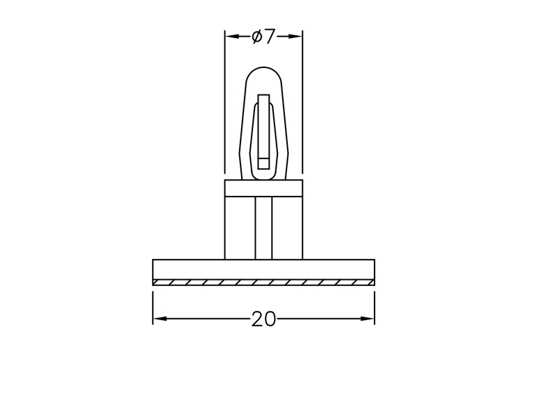 Self Adhesive Spacer Snap Lock Bayonet nose. Height 7.2mm. Material Nylon 66. Color Natural/Black. Adhesive backing thickness is 0.9mm