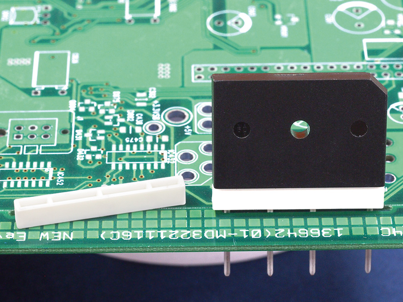Rectifier Housing 4 Lead. Material PBT. Color Natural/Black. For consistent vertical PCB mounting, these protect the rectifier leads from bending or breaking.
