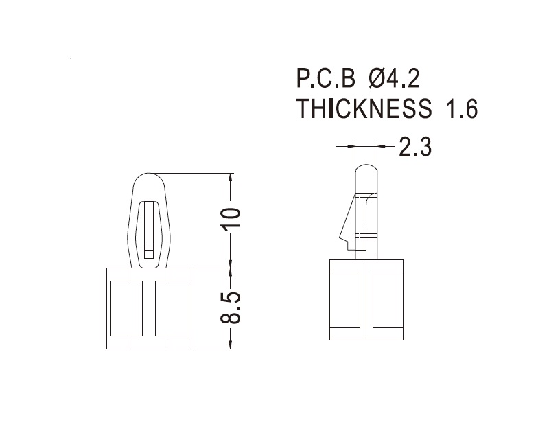 Snap lock hexagonal rest support spacer with a bayonet snap lock for a 4.2 mm mounting hole. Standoff height is 8.5 mm.