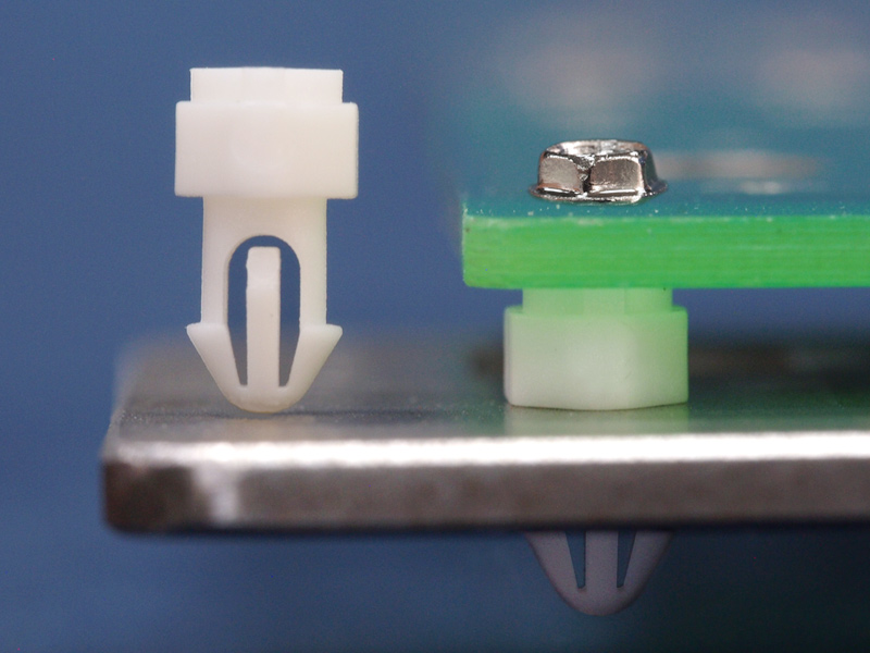 Spacer Self Tapping Snap Lock. Chassis hole Ø 3.0. Panel Thickness 1.7-3.05mm. Material Nylon 66. Color Natural/Black. This Support Post has an internal hole of Ø 1.7mm for a Self-tapping screw