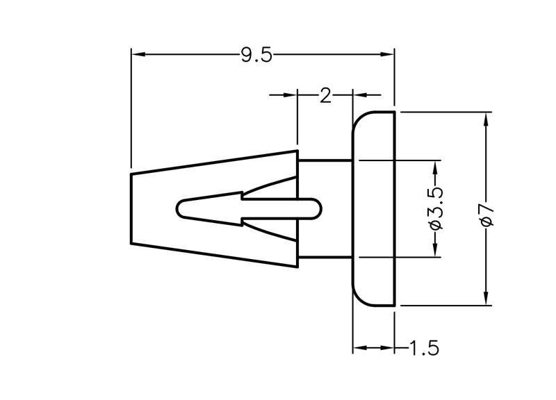 TPE soft Fan Mount Pin. Mounting Hole Ø3.7mm. Panel Thickness 2mm. Provides shock and vibration protection.