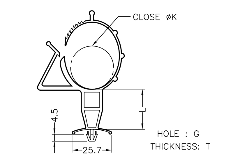 Snap Lock Round Adjustable Lock Elevated Cable Clamp. Nylon 66. Max. Bundle Size Ø27.8-33.8mm. Mounting hole Ø5.5mm. Chassis Thickness 1.0-1.2mm. Available in Natural or Black