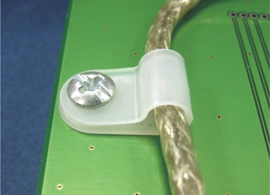 Nylon 66 P-Clip. Cable Holding dia. Ø5.0mm. Clip Width 10.0mm. These clips feature a unique P-shaped design with a Ø4.2mm Screw Mount hole, allowing for easy installation and secure attachment. Available in Natural or Black