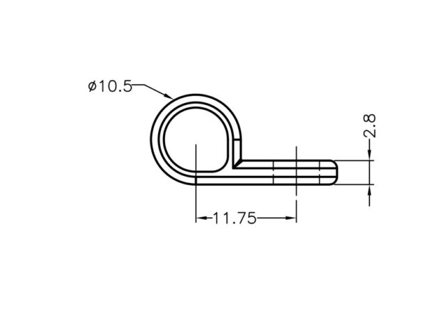 Screw Mount Cable Clip. Cable Holding dia. Ø7.5mm. Clip Width 9.5mm. Screw Mount hole Ø5.4mm.