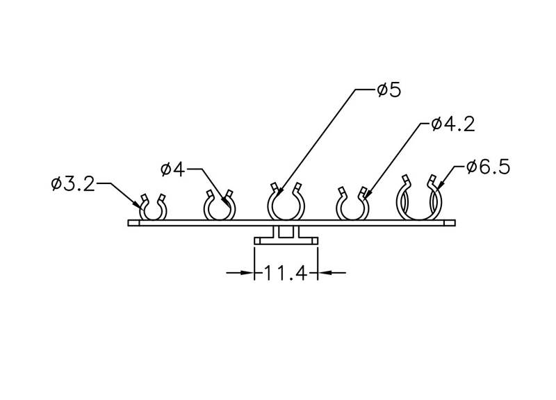 Wire Mount 5-way Screw Mount. Multiple Holding dia. Ø3.2/4.0/5.0/4.2/6.5mm. Base Dimensions (LxW) 59.0x10mm. Nylon 66. Available in Natural or Black.