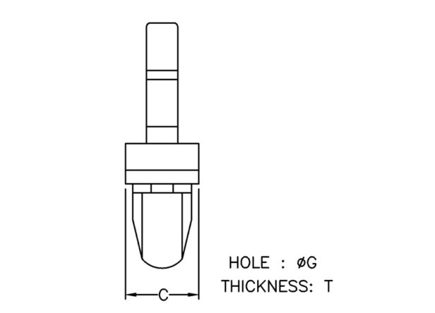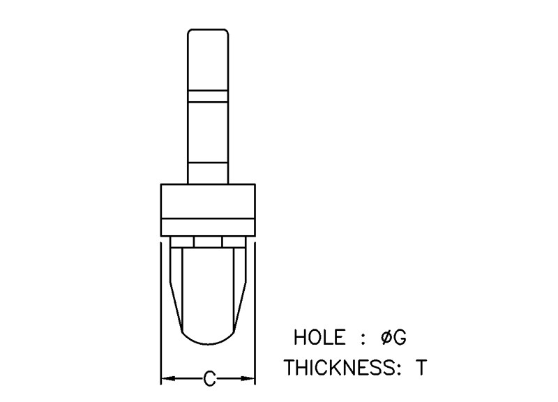 Snap Lock Mount Wire Clip Side Entry. Holding Area (WxH) 7.2×4.8mm. Mounting Hole dia. Ø4.8mm. Chassis Thickness 0.8-2.0mm. Material Nylon 66. Available in Natural or Black