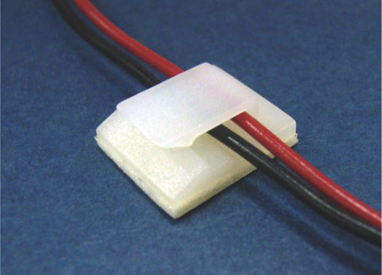 Adhesive Mount 11.7x10mm Wire Clip Side Entry. Holding Area 5.2×1.5mm. Material Nylon 66. Available in Natural or Black