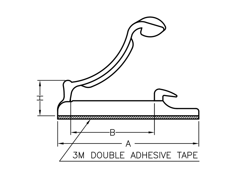 Flat Cable Clip Tension Lock 15x6mm Self Adhesive. Cable Width 8.9mm. Nylon 66. Color Natural or Black