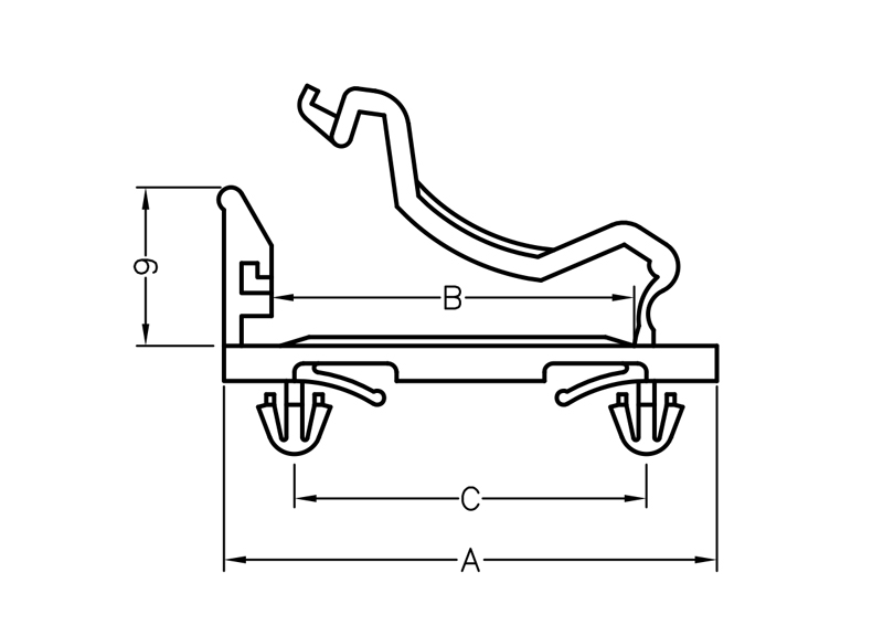 Dual Ø3.0mm hole size Snap-Lock Hinged Flat Cable Clamp 28.0×9.0mm with Retention. Max. Cable Width 20.6mm. Snap-Lock Centerline Pitch 20.0mm. Chassis Thickness 0.8-1.2mm. Nylon 66. Available in Natural or Black.