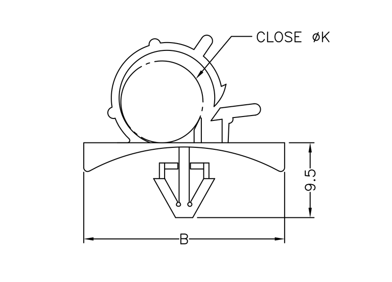 Snap Lock Round Cable Clamp with Locking. Nylon 66. Bundle Size Ø10.5mm. Mounting hole Ø6.5mm. Chassis Thickness 0.8-1.6mm. Available in Natural,Black or Gray