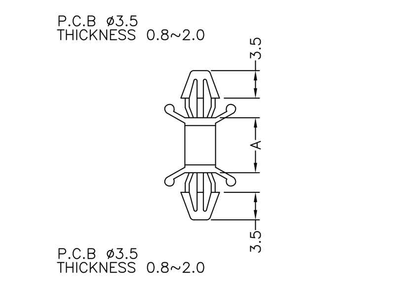 Arrowhead dual locking support post with tension wings. For a top and bottom hole of 3.5 mm. Spacer length is 2.1 mm.