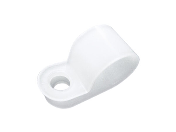 Nylon 66 P-Clip. Cable Holding dia. Ø5.6mm. Clip Width 11.6mm. These clips feature a unique P-shaped design with a Ø6.4mm Screw Mount hole, allowing for easy installation and secure attachment. Available in Natural or Black