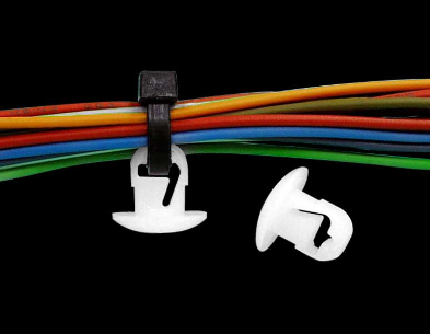 Rear Mount Cable tie holder for Cable Tie maximum width 4.9mm. Mounting Hole dia. Ø6.4mm. Nylon 66. Available in Natural and Black