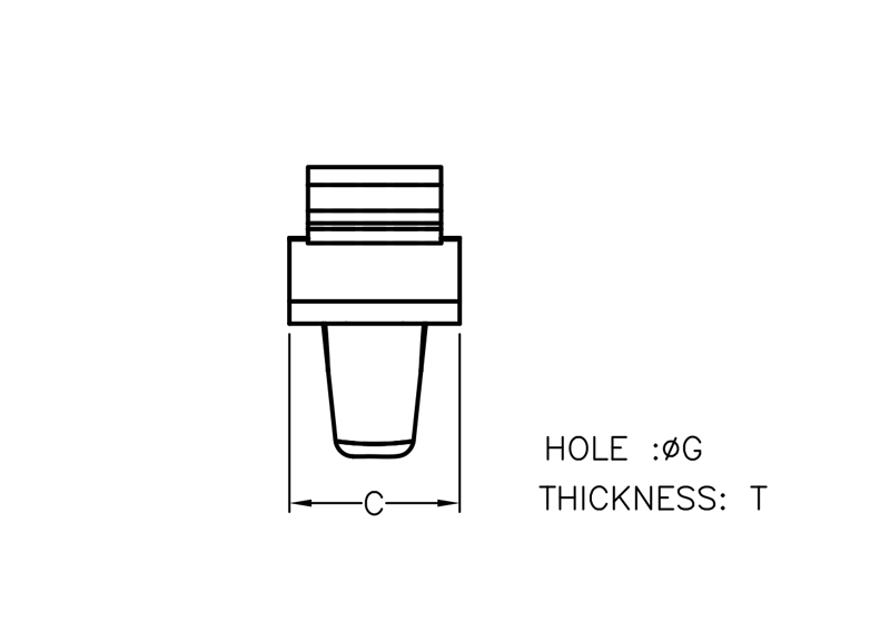 Snap Lock Cable tie holder for Cable Tie maximum width 5.8mm. Mounting Hole dia. Ø6.2-6.3mm. Panel Thickness 0.8-3.6mm. Nylon 66. Available in Natural and Black