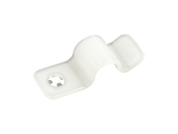 Screw Mount Spring Clip. Bundle dia. 8mm. Nylon 66. Clamp Width 12.8mm. Screw dia. Ø 5.2mm. Available in Natural or Black.