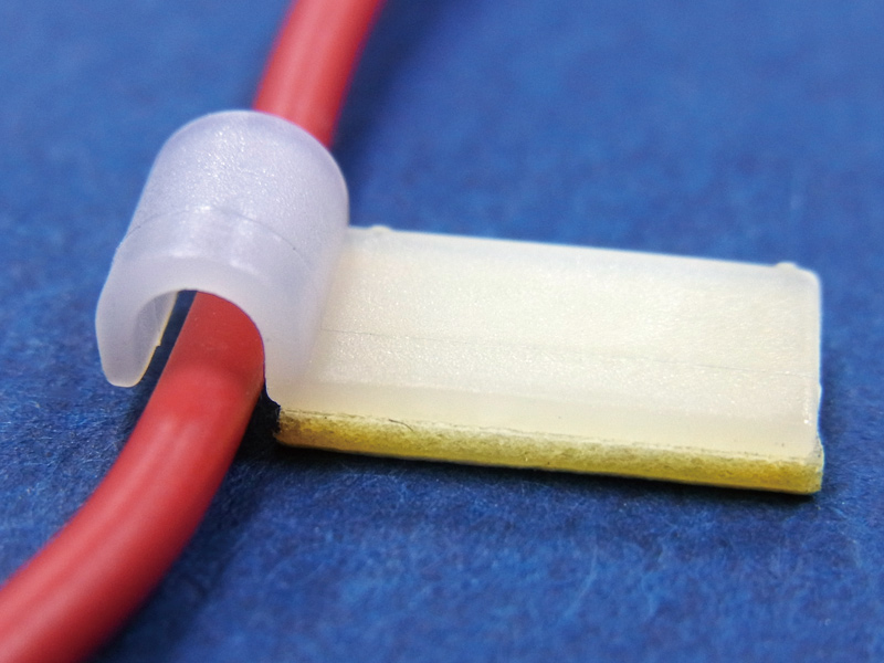 Adhesive Cable Clamp Half-U Nylon 66. Bundle dia.Ø2.4mm. Clamp Width 5.0mm. Available in Natural or Black.