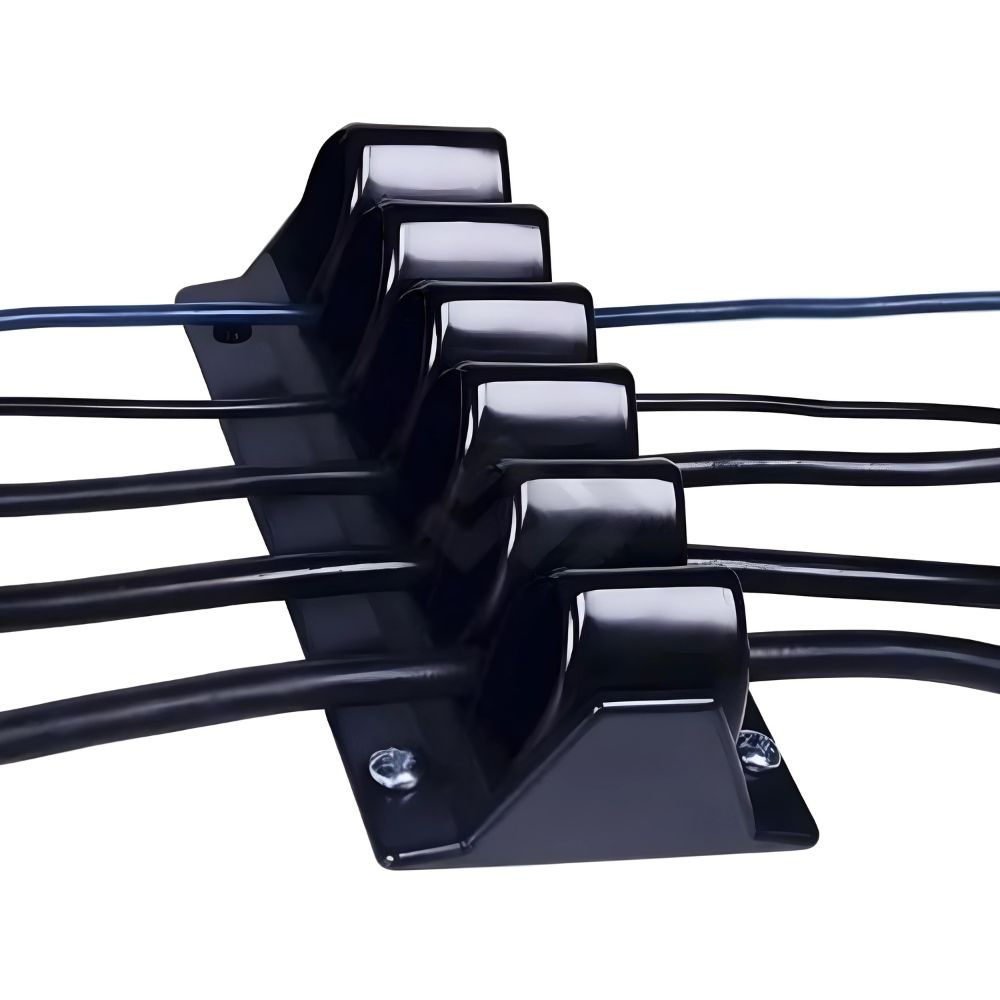 The Cable Grip comes with 5 interspaces for cables. The clamping of the loops allow more cables in each interspace. Interspaces can also hold cable protecting systems like Spiral Wrap, Braided Wrap or Cable Eater.