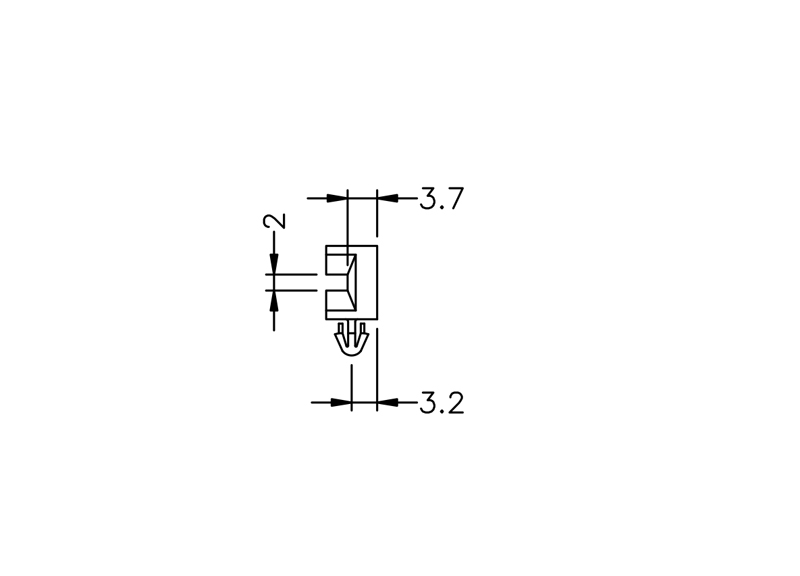 Card Guide PA66 Horizontal Snap-In Double Tapered Ends – Accepts PCB Thickness of 1.6mm. Length 68.0mm – Panel Thickness 1.6mm