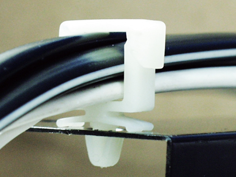 Snap Lock Mount Wire Saddle Hinged Locking Top. WxH (11.0×10.9mm). Mounting hole Ø4.8mm. Panel Thickness 0.8-2.0mm. Nylon 66. Available in Natural or Black