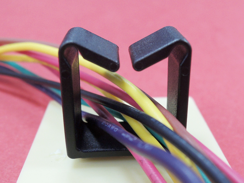 Dual Snap In Mount Wire Saddle (WxH) 16.0×16.0mm. Chassis Hole dia. Ø4.0mm. Chassis Thickness 0.8-2.5mm. Material Nylon 66. Available in Natural or Black.