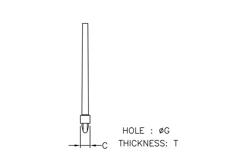 | Part no. | Material | Color | A W | B min. PHD | C max. PHD | D min. PT | E max. PT | Package |