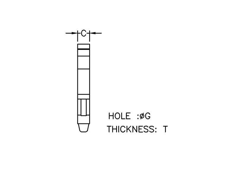 | Part no. | Material | Color | A W | B min. PHD | C max. PHD | D min. PT | E max. PT | Package |