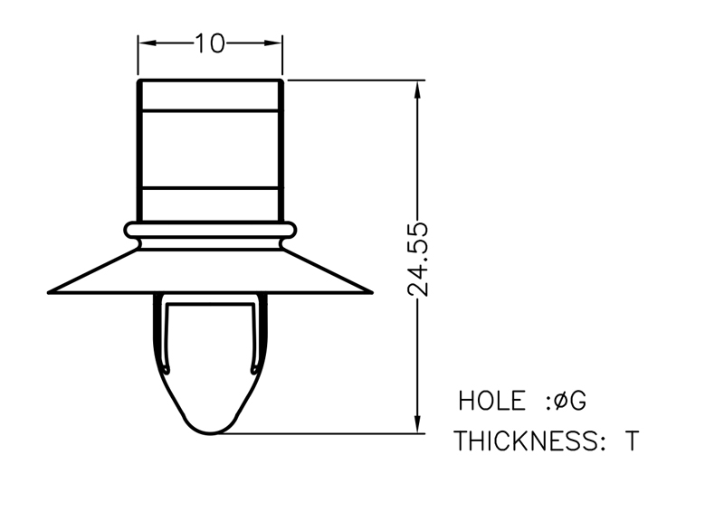 Snap Lock Cupped Cable Clip Snap. Cable Holding dia.Ø 5mm. Mounting hole dia.Ø 8.0mm. Panel Thickness 1.2mm. Nylon 66. Available in Natural and Black