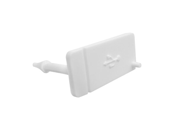 USB Type-A Female Panel Cut out Dust Cover anti-loss. Material TPU. Color Black or White. Protect your USB Type-A port from dust and damage with this dummy plug. Comes with anti-loss provision.