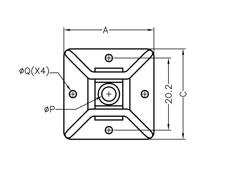 Cable tie mount 25.3×25.3mm Self Adhesive/ Screw Mount. Height 6.2mm. For Max. Cable Tie width 7.8mm. Material Nylon 66. Available in Natural or Black.