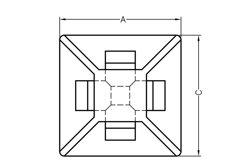 Cable tie mount 13x13mm Self Adhesive. Height 3.2mm. For Max. Cable Tie width 3.2mm. Material Nylon 66. Available in Natural or Black. UL Certified