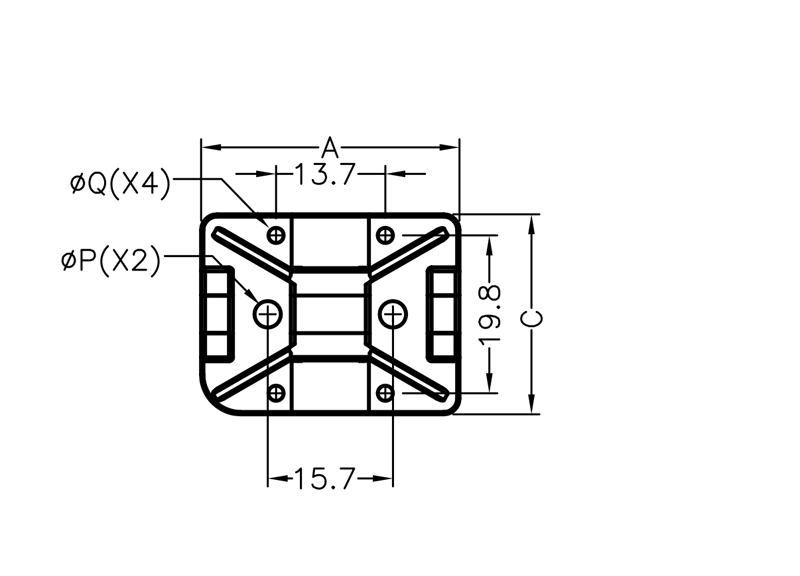 Cable tie mount 32.4×25.1mm Self Adhesive / Dual Screw Mount 3.3mm. Height 5.8mm. For Max. Cable Tie width 8.3mm. Material Nylon 66. Available in Natural or Black.