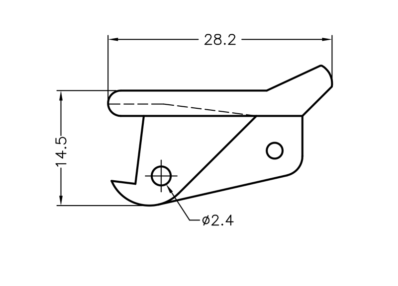 Card Ejector PA66 Upturned Lever 28.2mm for 1.6mm PCB incl. roll pin