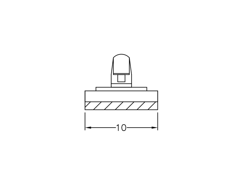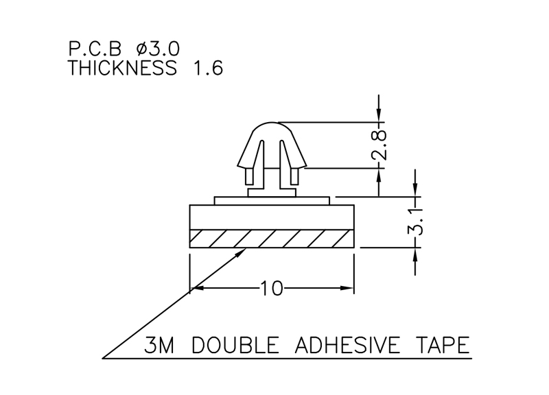 Self Adhesive Spacer Arrowhead Snap Lock. Height 2.0mm. Top Hole dia. Ø 3.0mm. Thickness 1.6mm. Material Nylon 66. Color Natural/Black.