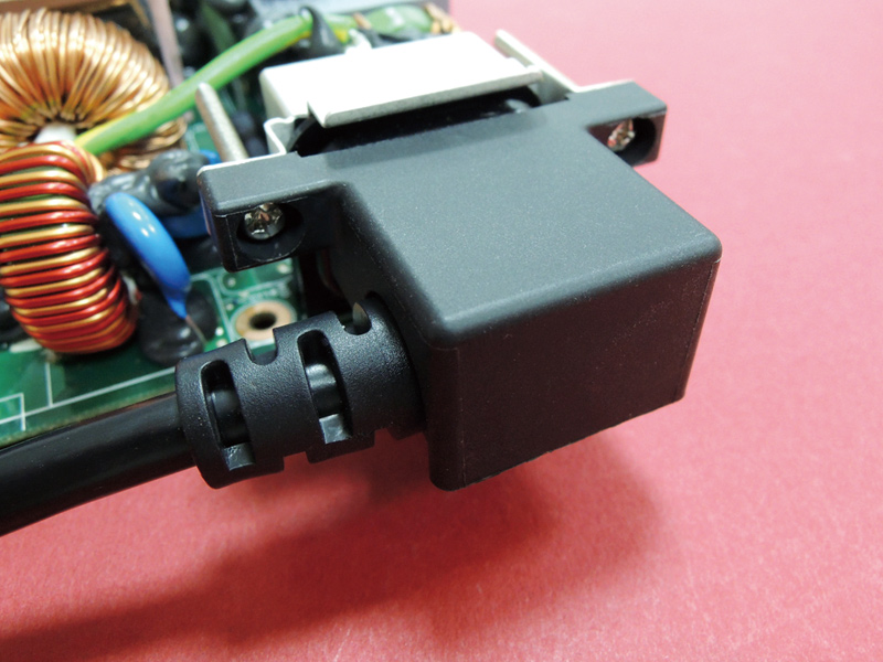 Power Plug Cover Nylon 66. Cap for right-angled power connector with integrated cable recess.