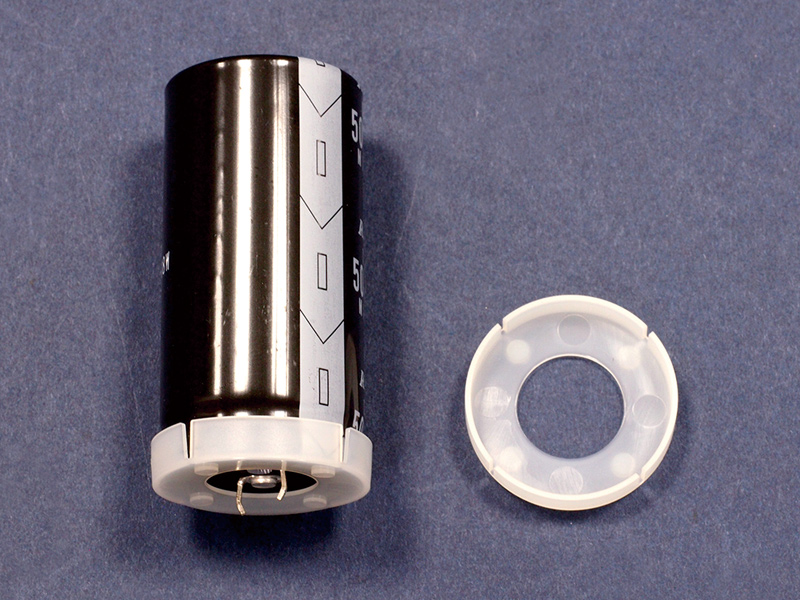 Capacitor Mount. For capacitors with a dia. Ø35.8mm. Material Nylon 66. Color Natural/Black