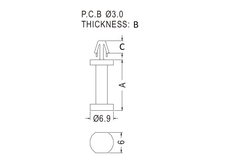 | Part no. | Material | Color | A Length | B Panel THK | C Protrusion | Package |