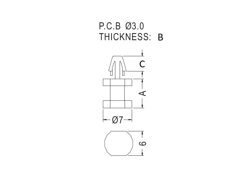 | Part no. | Material | Color | A Length | B Panel THK | C Protrusion | Package |