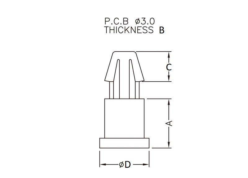 Rest support with an arrowhead for a 3,0mm mounting hole. Standoff height is 2,0mm.