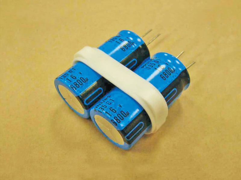 Electrolytic Capacitor Clip Dual Cells. Material Nylon 66. Color Natural/Black