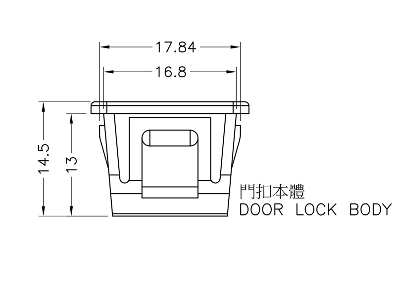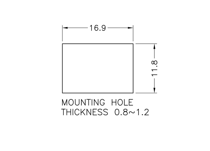 Panel Catch Rectangular. Panel Cutout (WxH) 16.9×11.8mm. Panel Thickness 0.8-1.2mm. Material POM. Color Black.These Door Latches are suitable for metal cabinet doors and access panels. Forms a set with Door Striker DTTL-3B