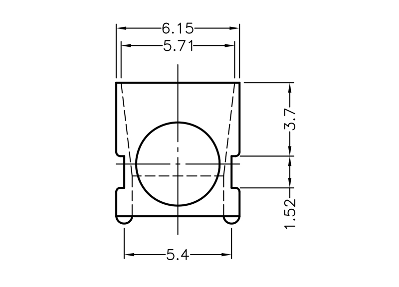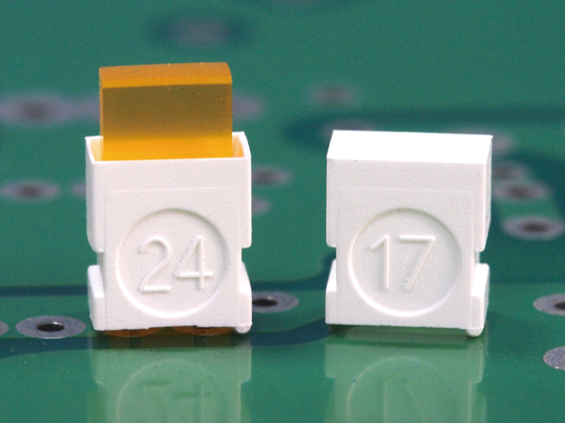 LED housing for rectangular LED. Material Polycarbonate; Available in Natural and White