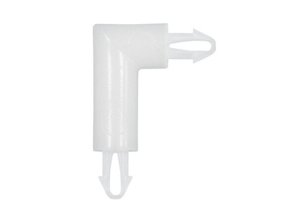 Spacer Snap Lock Right Angled Special. Height 8mm. Snap lock hole dia. Ø2.0mm. Thickness 1.6mm. Nylon 66. Color Natural/Black