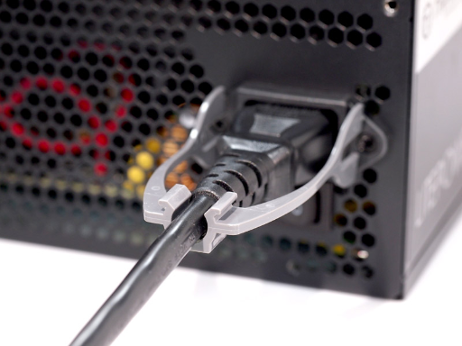 AC Power Strain relief for C13 connector. Nylon 66. Color Gray. Prevents accidental disconnection of the cord