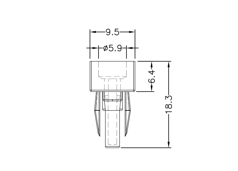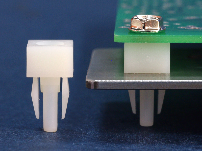 Stand-off Expansion Nut. fits into a squared panel hole 6.8×6.8mm. Insulates areas of assembly from electrical and thermal transfer and spreads load over a wide area. Standoff height is 6.4mm.